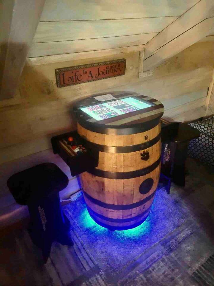 Location, Location, Location! "Baby Blue" is in an ideal location, 7 miles to downtown Gatlinburg and 8 miles to Dollywood. This location allows easy access to all that these amazing mountain towns have to offer, while also giving you that true mountain cabin experience. Situated near the mountain crest in the Sky Harbor Community, this cabin is tucked into the trees along the winding mountain roads. This traditional wood cabin has undergone a unique renovation, adding fun pops of color and modern decor. The royal blue, green, and red accents give this traditional cabin incredible character that is rare to find in the area! Enjoy your morning coffee watching the local wildlife from the comfortable rockers outside or soak in the hot tub under the charming string lights. You can light up the gas fire pit while you do some classic deck grilling. The living space holds modern furnishings that compliment the unique character of this home. There is plenty of seating for your group to enjoy a game or movie around the fireplace. The green velvet couch pulls out to accommodate parties of 4 or 5. There is a king bed in the first floor bedroom and in the loft. The loft is also home to a half bath, an arcade, foosball table, games, a nugget couch, plus Nintendo Wii and a limited edition Sega Genesis (mini unit with original games and controllers). The colorful and well-appointed kitchen will inspire you and has everything you need to create fabulous home cooked meals. Make lasting memories at "Baby Blue" with an ideal location, unique character, and amenities to allow for a comfortable and unforgettable stay in the Great Smoky Mountains.
